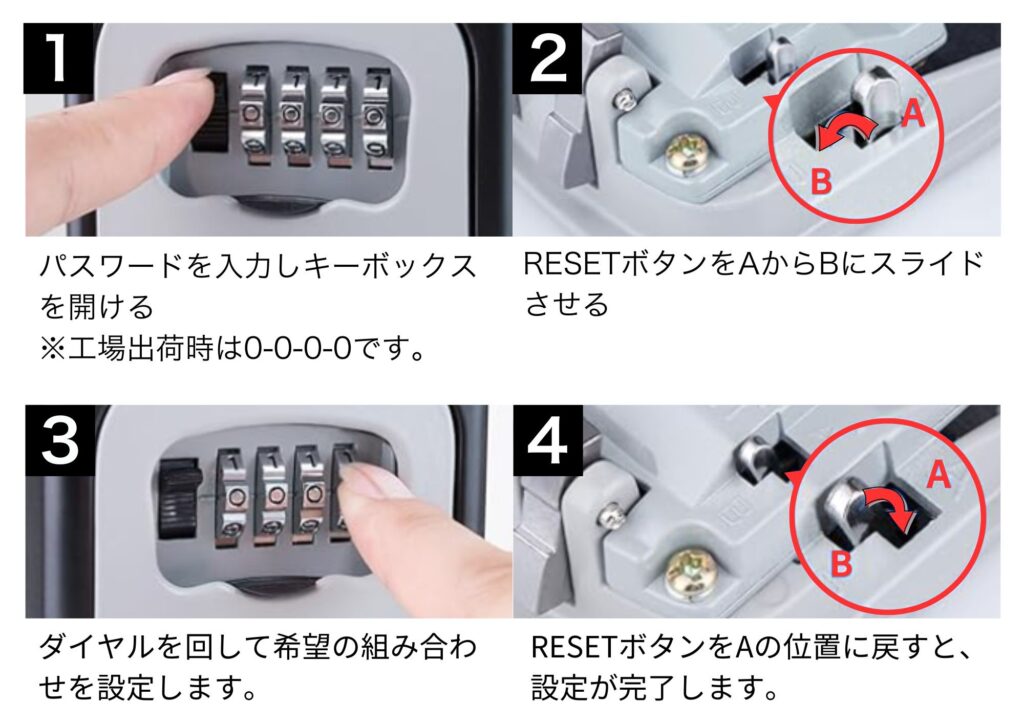 鍵などを複数人でシェア・管理できる4桁ダイヤル式のキーボックスです。