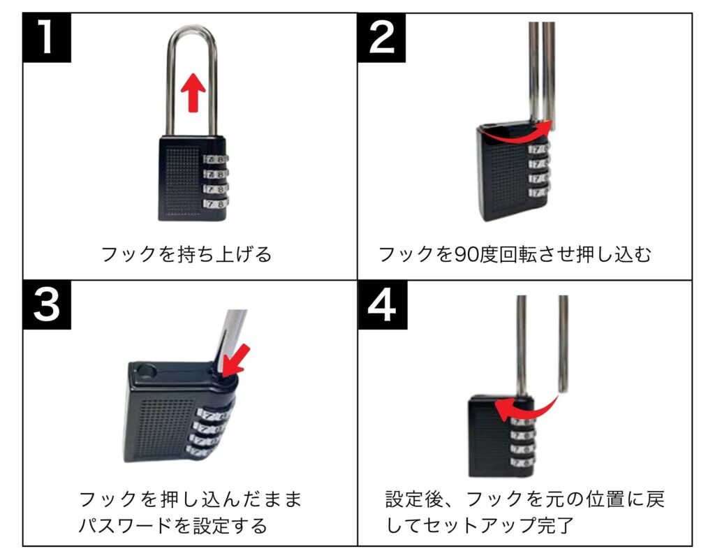 3、フックを押し込んだまま希望する4桁を設定する